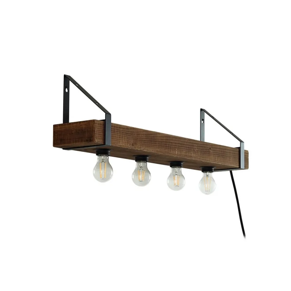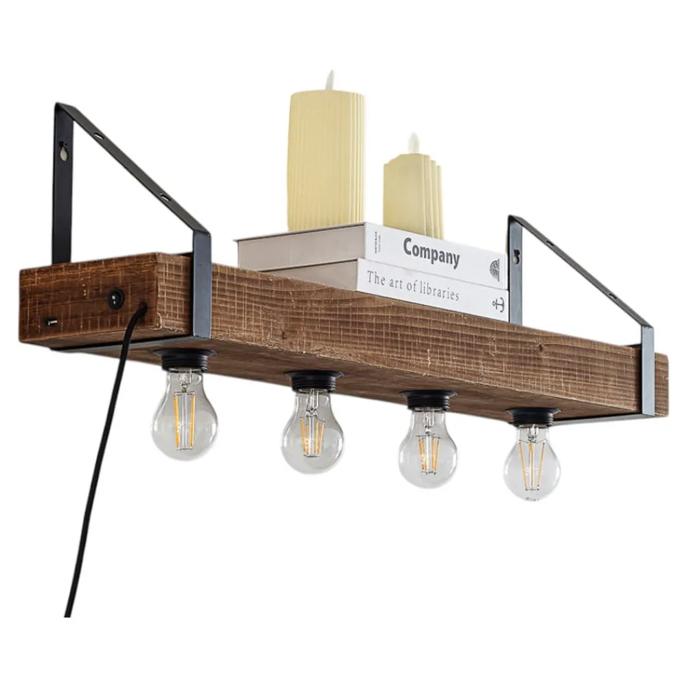 Lindby vegglampe Vatana, tre, støpsel, USB-port, 80 cm| Vegglamper