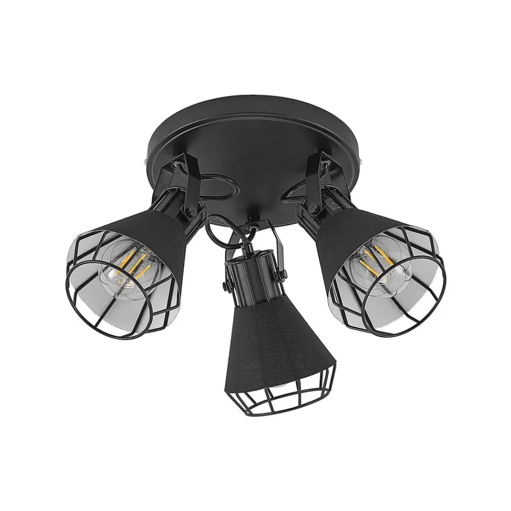 Tre-lampe spotlight Yusei i en rund form laget av jern og stoff