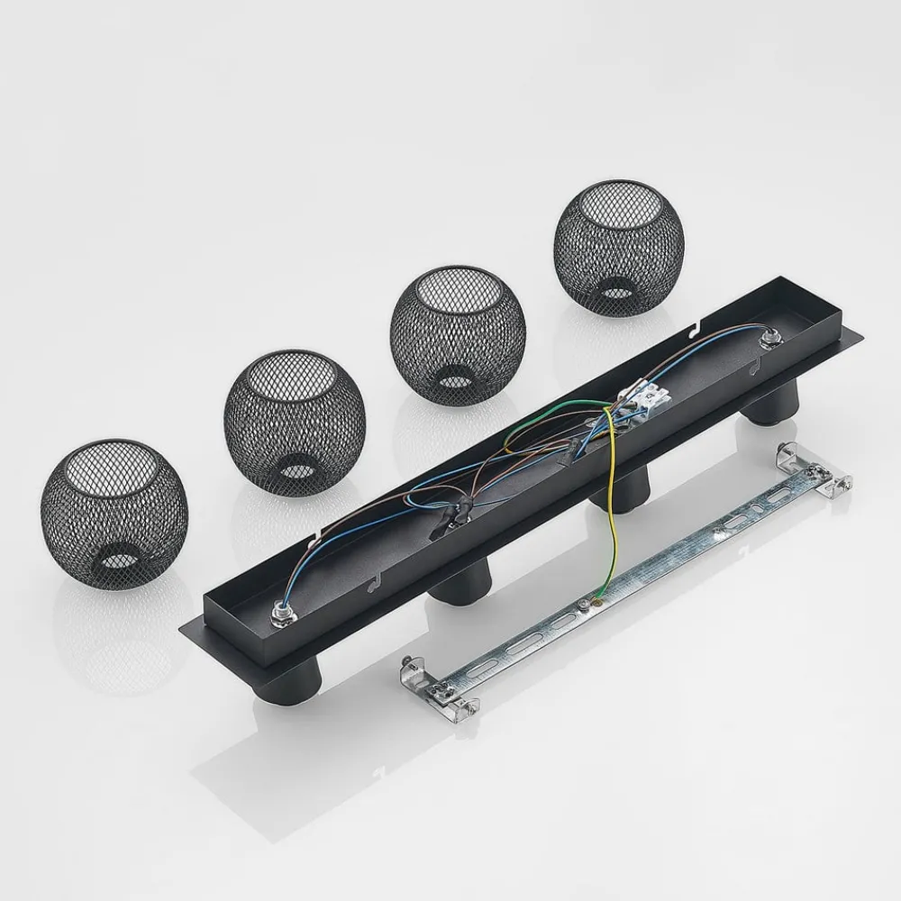 Langstrakt Zerda taklampe med fire lamper med fire sfæriske nyanser