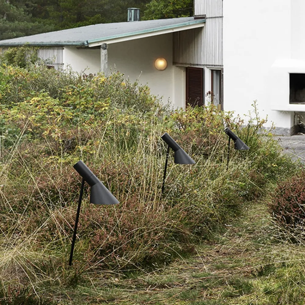 Svart AJ Garden LED-sokkelarmatur med bunnplate, uten adapter AJ Garden LED-sokkelarmatur er laget av de robuste materialene aluminium, rustfritt stål og polykarbonat. Takket være kapslingsklasse IP65 kan den brukes fleksibelt utendørs. Den avgir et skjermet, blendingsfritt og direkte lys mot bakken. Armaturhodet er fastmontert, og innsiden av lampeskjermen er hvitmalt slik at lyset reflekteres på en behagelig måte. Skjermens form gir førsteklasses belysning og dermed optimal utsikt til omgivelsene. Utendørslampen monteres med en bunnplate. En AJ Garden-sokkelarmatur med adapter er nødvendig for drift. Opptil 6 armaturer kan seriekobles (1 armatur med adapter, 5 armaturer uten adapter). Maksimal avstand til siste armatur er 30 m.AJ-armaturserien ble designet i 1957 av den danske arkitekten Arne Jacobsen for SAS Royal Hotel i København. Jacobsen er født i København og ble uteksaminert som arkitekt fra Det Kongelige Danske Kunstakademi i 1927. Bygninger tegnet av ham finnes i Danmark, Tyskland og Storbritannia. AJ-lampene regnes som Jacobsens beste arbeid og er i dag en klassiker hos lampeprodusenten Louis Poulsen.