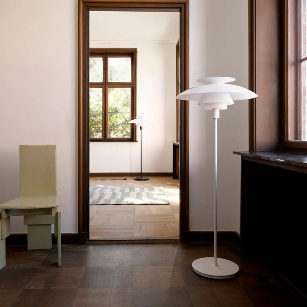 gulvlampe PH 80 med tre-lags skjerm av opalhvit akryl