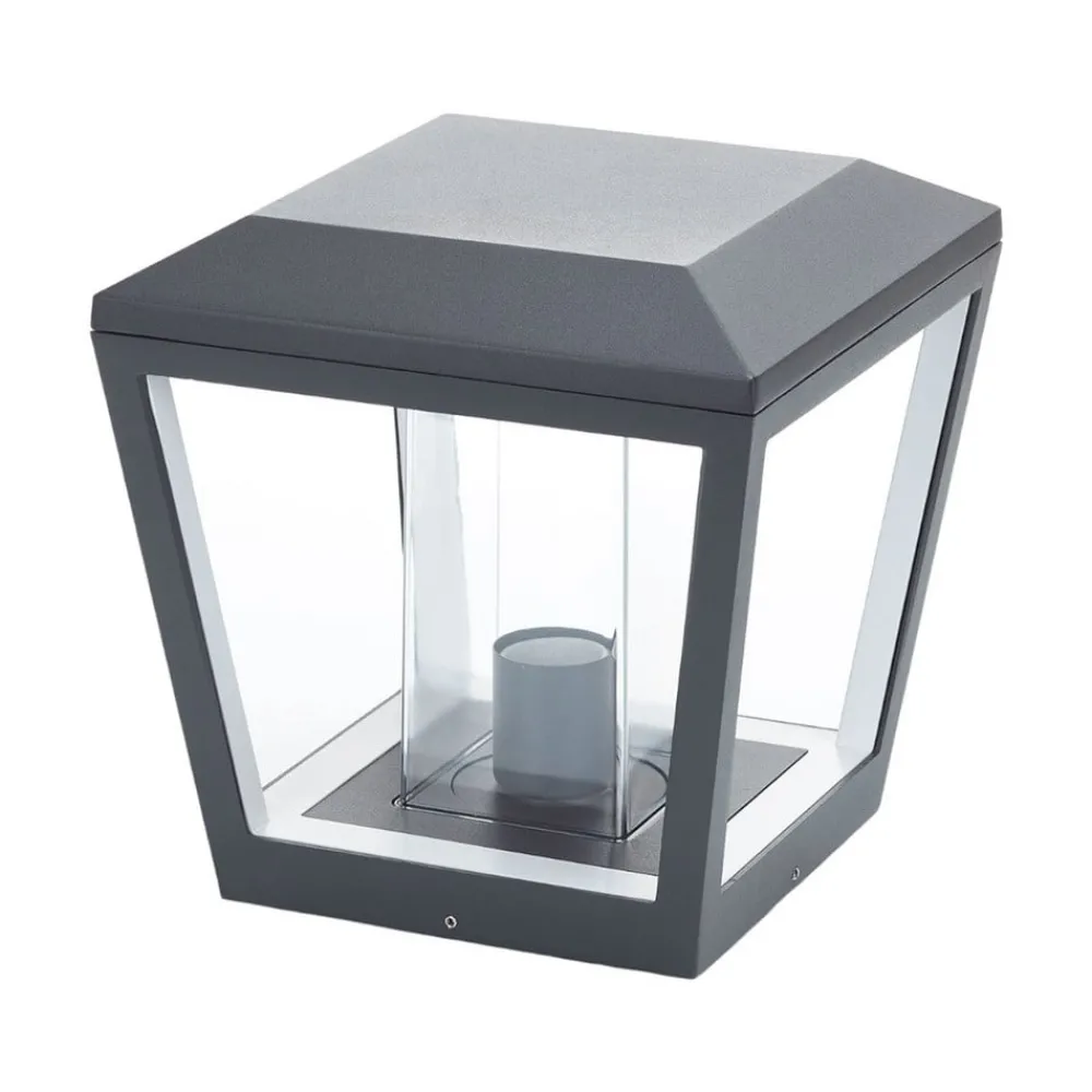 Lucande Dunia sokkellampe, antrasitt, metall, 24 cm, IP54| Sokkellamper Med Sensor|Terrassebelysning
