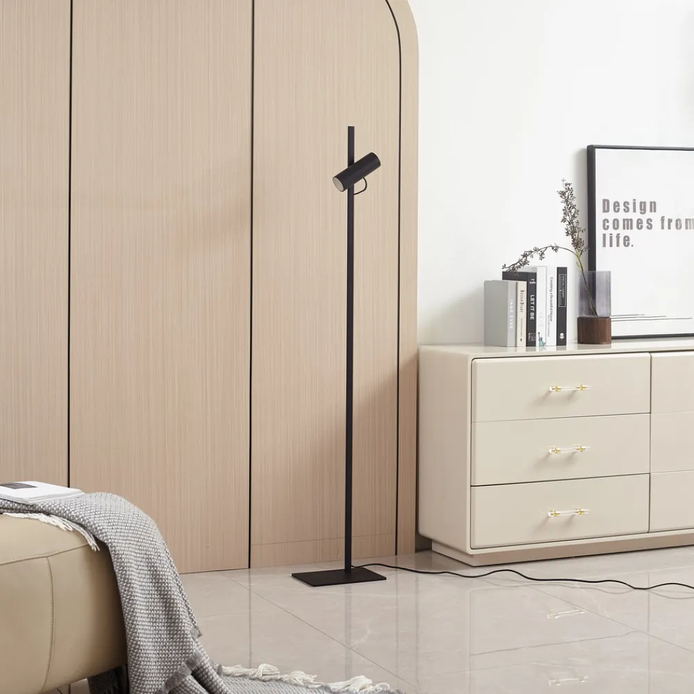Moderne belysning til stue og spisestue: Lysias gulvlampe i svart Gulvlampen Lysias, et mesterverk i moderne design, forvandler ethvert rom til en oase av stemning. Med sin elegante svarte finish og spot-funksjon gir den en målrettet belysning som bader både spisestuen og stuen i en inspirerende og samtidig koselig atmosfære. Gulvlampens klare linjer føyer seg sømløst inn i moderne møbleringskonsepter og blir et blikkfang i ethvert rom. Enten det er som leselampe eller for å fremheve spesielle oppholdsrom – denne gulvlampen er en garanti for stemningsfull og funksjonell belysning.