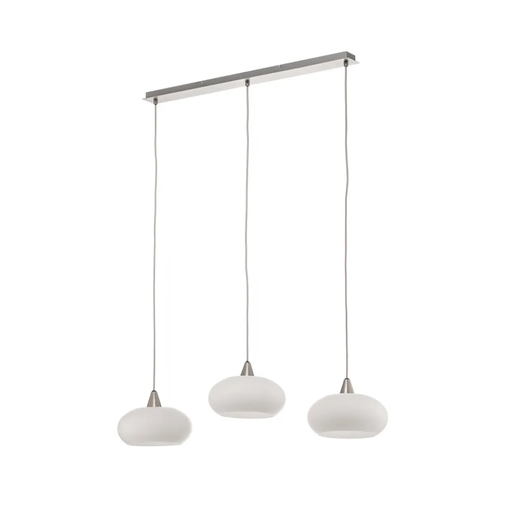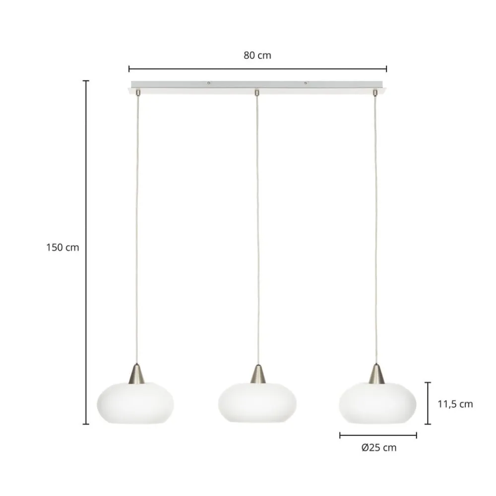 Sharvil pendellampe med 3 lyskilder i opalhvit og nikkel – perfekt til spisebordet Den vakkert designede pendellampen Sharvil passer perfekt til dine fire vegger. Lyset kan dimmes ved hjelp av en ekstern dimmer (ikke inkludert) eller en dimbar lyskilde. Enten det er i spisestuen eller stuen – denne hengelampen har også en plass i hjemmet ditt. I Lucande-merkekvalitet står denne lampen i moderne stil, designet av Ingo Thiele, for vellykket design og en overbevisende boopplevelse. Sharvil-modellen er egnet for lyskilder med E27-sokkel, kommer i en imponerende nikkelfarge og kan også brukes som dekorasjon når den er slått av.