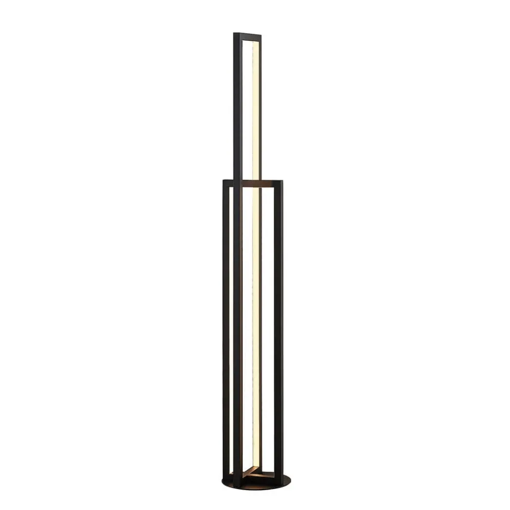Matt svart Hylda LED-gulvlampe i grafisk design, med tretrinns dimmeteknologi Den grafiske designen og den matt svarte finishen gjør Hylda LED-gulvlampe til en moderne lyskilde som kjennetegnes av en indirekte og svært behagelig lysfordeling. LED-lampene som avgir varmhvitt lys, er montert i de motstående metallrammene av aluminiumsprofiler på innsiden. Et satinert deksel sørger for et svært homogent lysbilde, slik at hele overflaten spotlighter jevnt og det skapes en blendingsfri lyseffekt. 3-trinns dimbar + av: Bryteren gjør det mulig å slå armaturen på og av som vanlig. Takket være 3-trinns dimmeteknologien med integrert av-funksjon kan den også dimmes til tre ulike lysstyrkenivåer ved å trykke på bryteren flere ganger: 100 %, 50 % og 10 %.