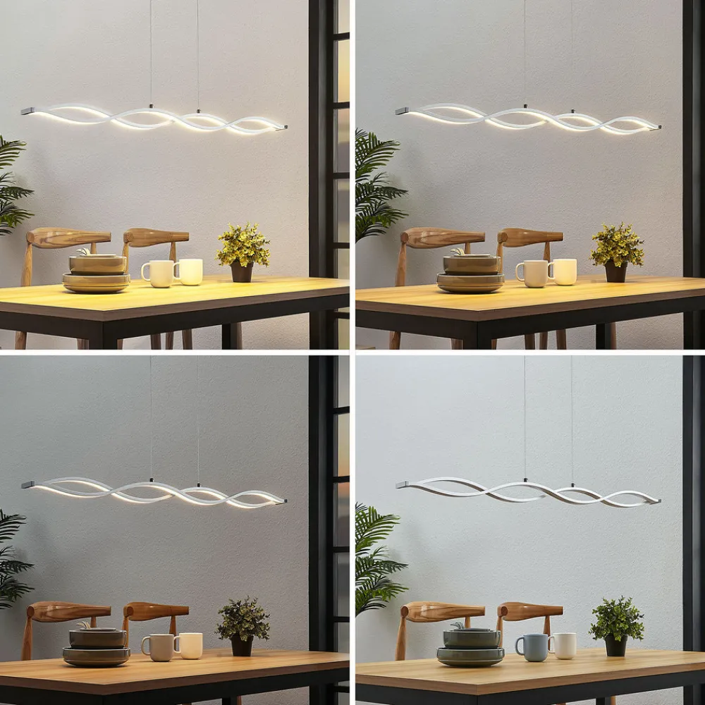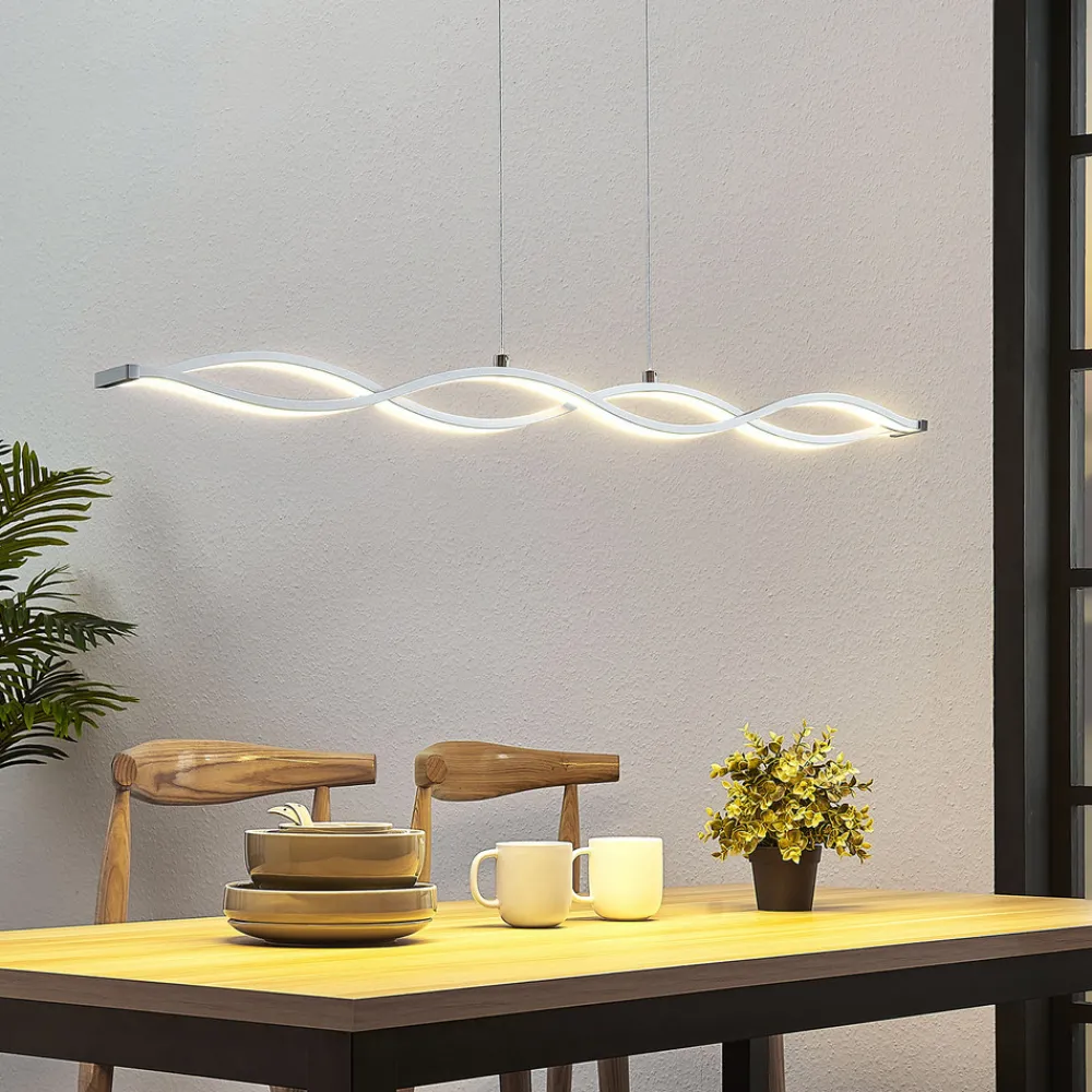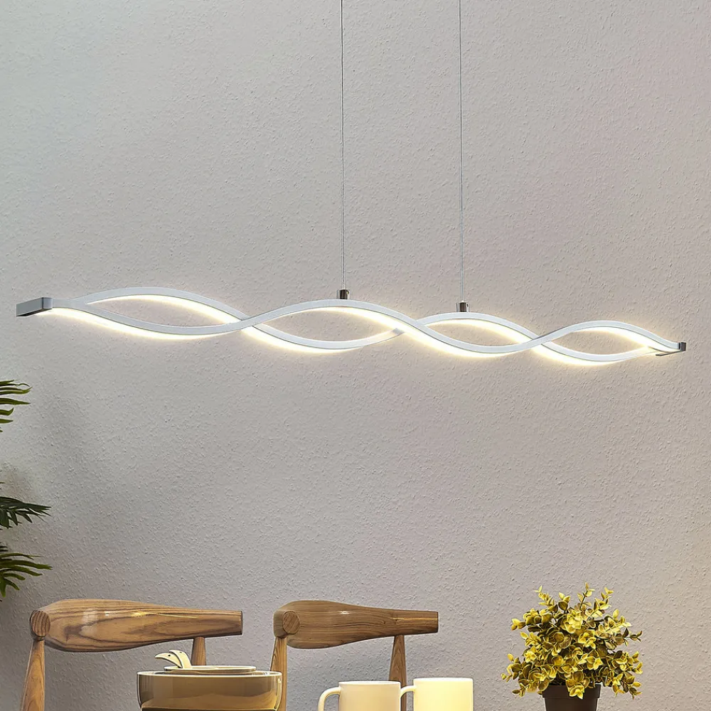Bølget LED-hengelampe i bjelkeform Roan med høy lysstyrke. Ideell for spisestuen