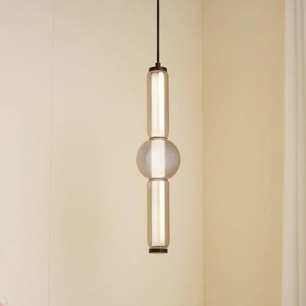 Lucande LED-hengelampe Savete, røykgrå, glass, Ø 12 cm| Led-Innendørs
