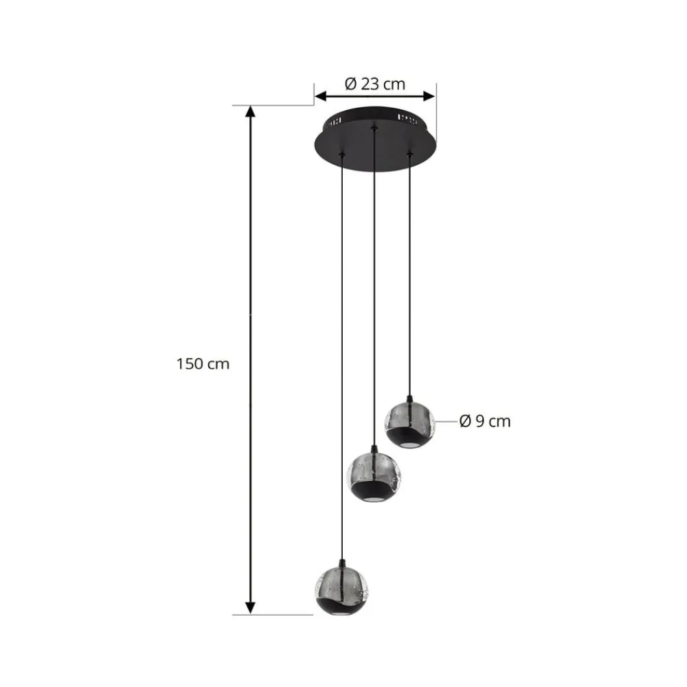 LED-pendellampen Hayley er laget av høykvalitets glass og metall og har en svart farge som gir ethvert rom et elegant preg. Den integrerte LED-lyskilden gir et energibesparende og varmhvitt lys med en fargetemperatur på 3000 Kelvin, som skaper en behagelig atmosfære i stuen eller spisestuen.