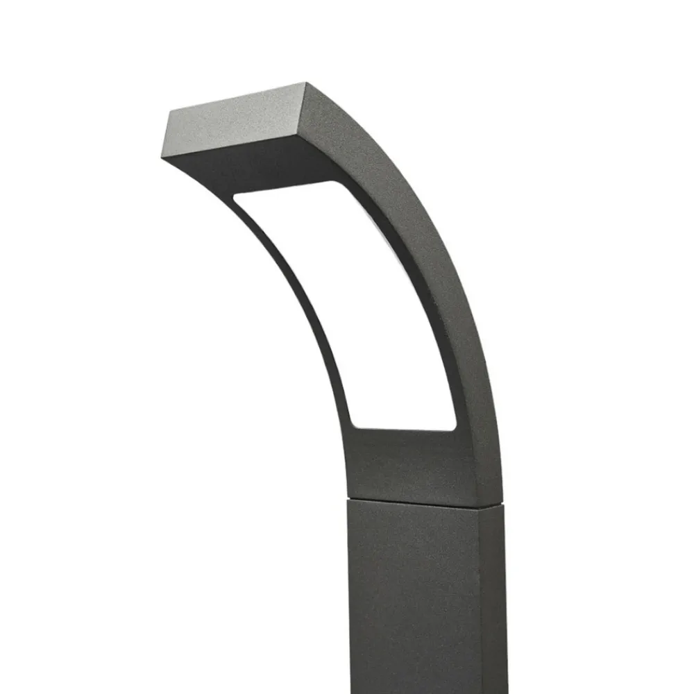 Elegant Juvia LED-pullertlampe med grå lakk Energieffektive LED-lamper sørger for at denne pullertlampen gir god belysning i uteområder uten å bruke mye strøm. LED-pullertlampen kan brukes til å belyse stier, innkjørsler og andre områder. Juvia har i utgangspunktet et lineært design, men den øvre delen av lyselementet har en buet form som gjør at lyset rettes mer ned mot bakken – RAL 840-M