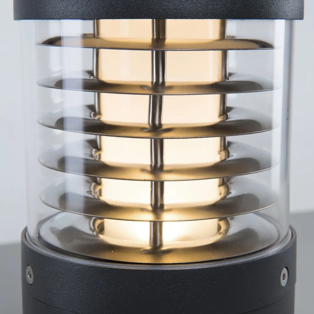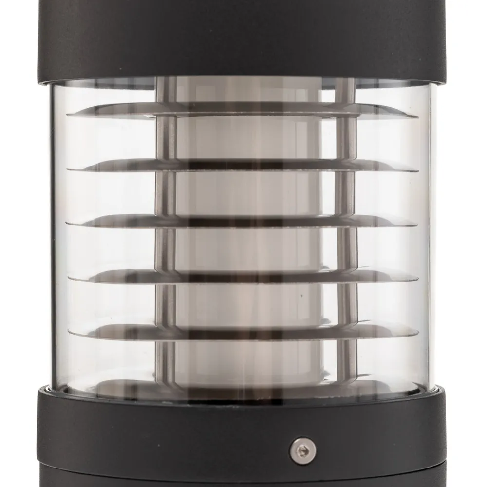 Sylindrisk Lucius LED-sokkellampe i aluminium Lucius LED-sokkellampe er utstyrt med en avblending rundt de energieffektive LED-pærene, noe som gir en skånsom nedtoning av det varmhvite lyset. Den helt sylindriske formen gir Lucius et moderne uttrykk som gjør den til en ideell sokkellampe for belysning av nye bygninger og deres omgivelser. Polykarbonatdekselet er klart, og med kapslingsgrad IP54 er armaturen, som kan monteres på vegger, sokler og andre forhøyninger, tilstrekkelig beskyttet mot inntrengning av vann og smuss.