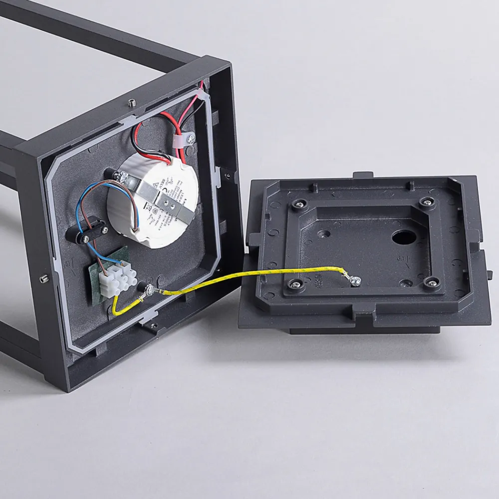 LED-sokkellampe Lealan til utendørs bruk Rammen på denne LED-sokkellampen er smal, og du kan så å si se gjennom den, noe som gjør at den virker behagelig lys. LED-spotlightene – et Cree-produkt – er plassert i den øvre delen av armaturen og lyser nedover. Denne designen gir et indirekte lys som virker svært behagelig og flyter mykt inn i husets omgivelser, fordi lyskilden ikke er direkte synlig og derfor ikke forstyrres av blending.