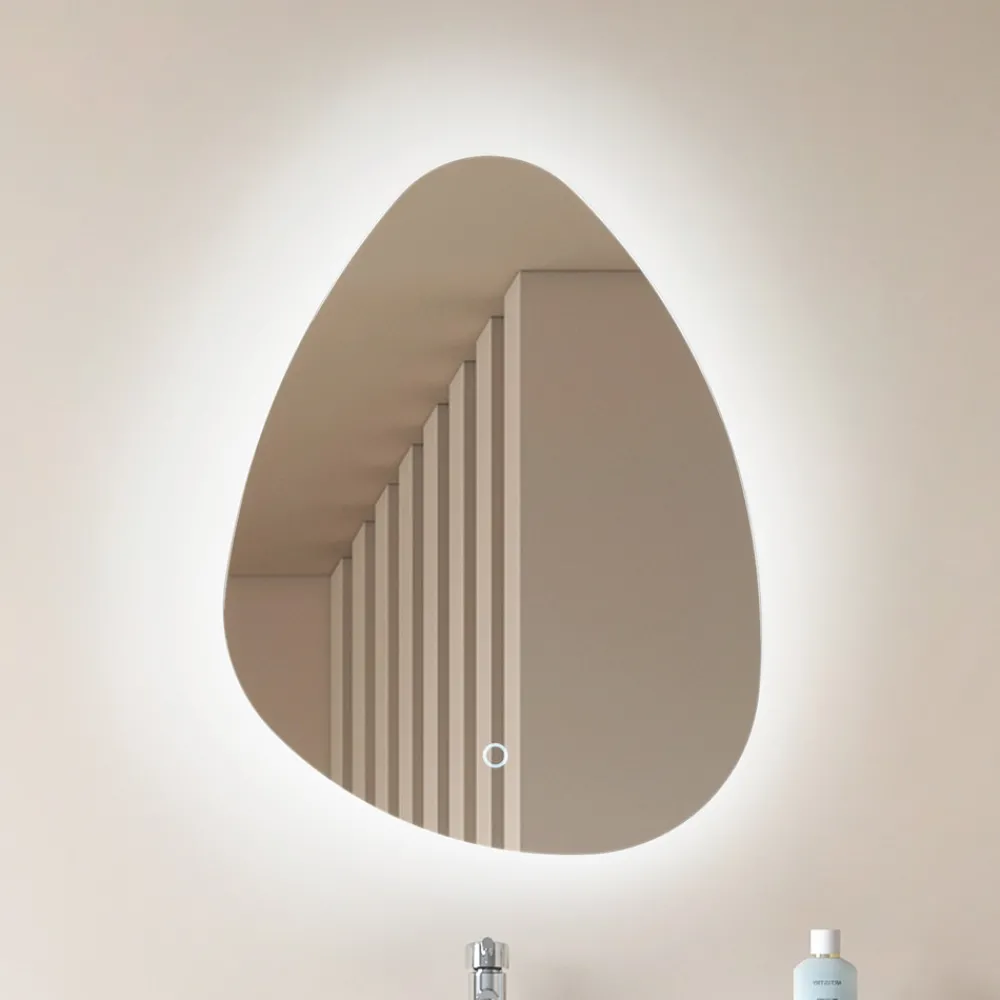 Moderne LED-speil Celestiel for badet – Integrert CCT LED-funksjon Speilet med LED-belysning kombinerer funksjonalitet og stil i en moderne design som er spesielt utviklet for baderommet. Den integrerte LED-lyskilden med CCT-funksjon gjør det mulig å justere lysfargen etter behov – fra varme toner for en avslappende atmosfære til kjøligere nyanser som fremmer konsentrasjon og årvåkenhet. De avrundede kantene på speilet føyer seg sømløst inn i den moderne stilen og skaper et harmonisk helhetsinntrykk. Med den innebygde LED-teknologien får brukerne ikke bare langvarig belysning, men også energieffektiviteten som gjør Celestiel LED-speilet til et smart valg for ethvert bad.