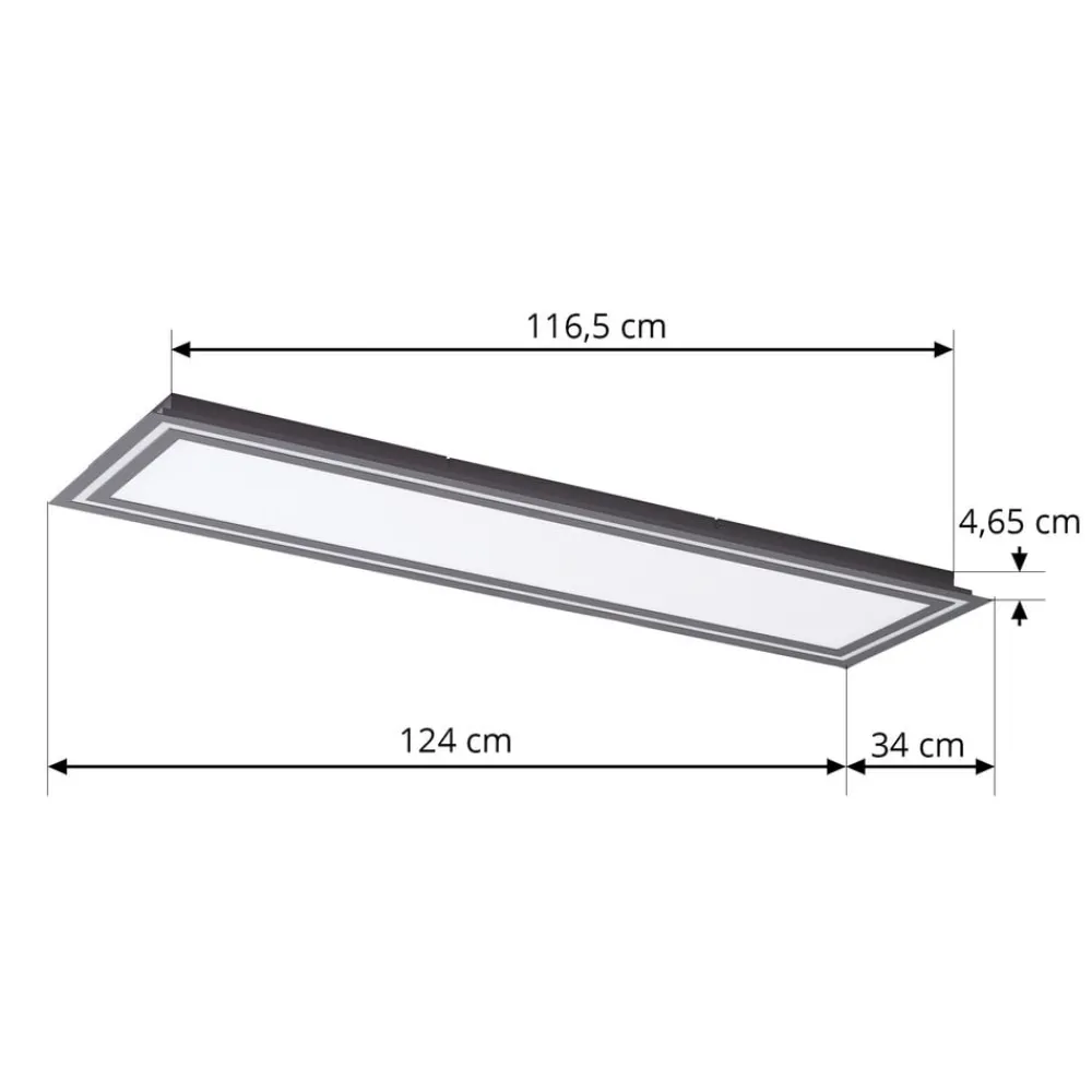 Rektangulær taklampe Leicy med CCT- og RGB-funksjon Denne vakkert designede taklampen vil lyse opp interiøret ditt. Taklampen kan enkelt slås av og på ved hjelp av en fjernkontroll, og du kan justere lysstyrken etter eget ønske ved hjelp av en fjernkontroll. Den har en fargeskiftefunksjon som gjør at du kan justere lysfargen etter dine behov. Det enestående utseendet gir mange bruks- og kombinasjonsmuligheter og kan enkelt integreres i rommene dine. Den svarte lampen er en del av Lucande-merkets kvalitet og imponerer med sin smakfulle design og unike følelse. Den skaper en herlig atmosfære og er spesielt effektiv i ditt område. Takket være sitt enestående utseende harmonerer lampen med nesten ethvert interiør og skaper en god atmosfære. La ditt oppholdsrom stråle i ny prakt – inkl. fjernkontroll – RGB-funksjon – CCT-funksjon (2 700 K – 6 500 K)