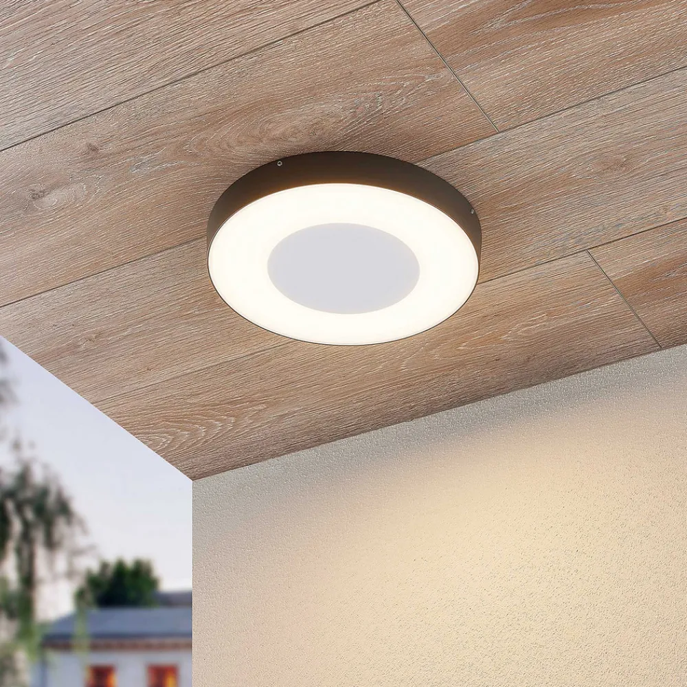 Mørkegrå Sora LED utendørs taklampe med sensor Den elegante Sora LED utendørs taklampe gir også uteområder et kla…