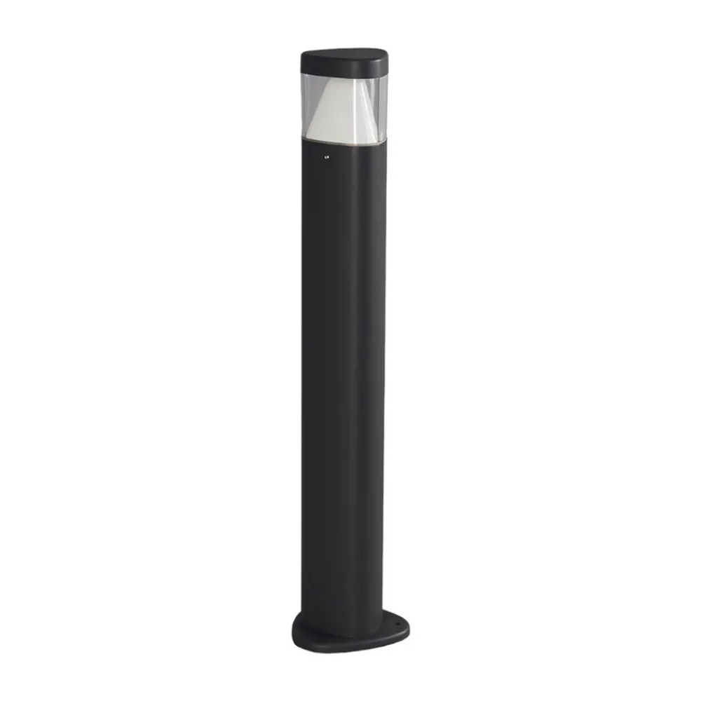 Trekantet Milou sokkellampe med LED fra OSRAM Sokkellampen Milou er laget av trykkstøpt aluminium og har et moderne utseende. Overflaten på den trekantede aluminiumskroppen er lakkert i antrasitt, med en innsats av polykarbonat i den øvre delen, og bak denne sitter den kraftige LED-pæren fra Osram.