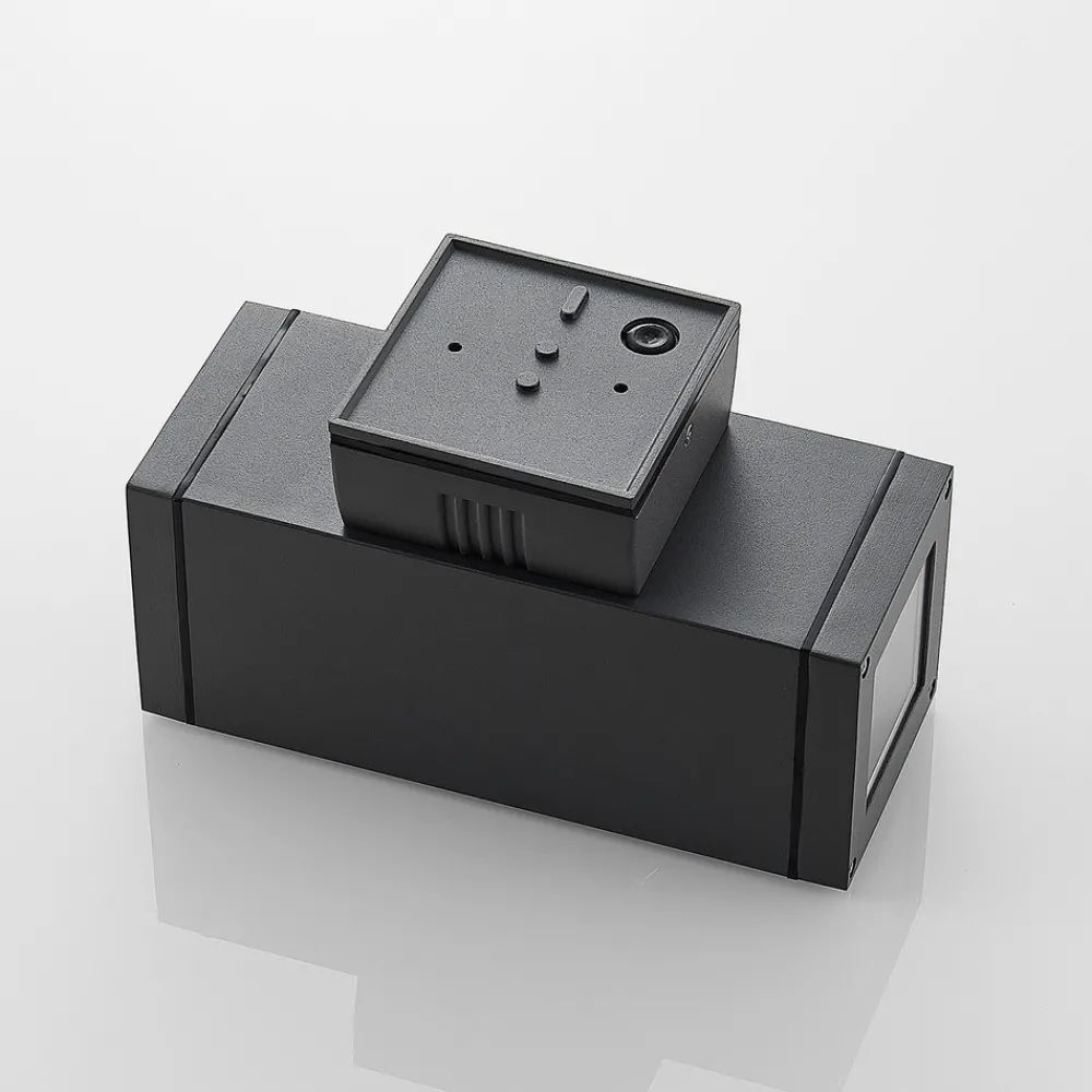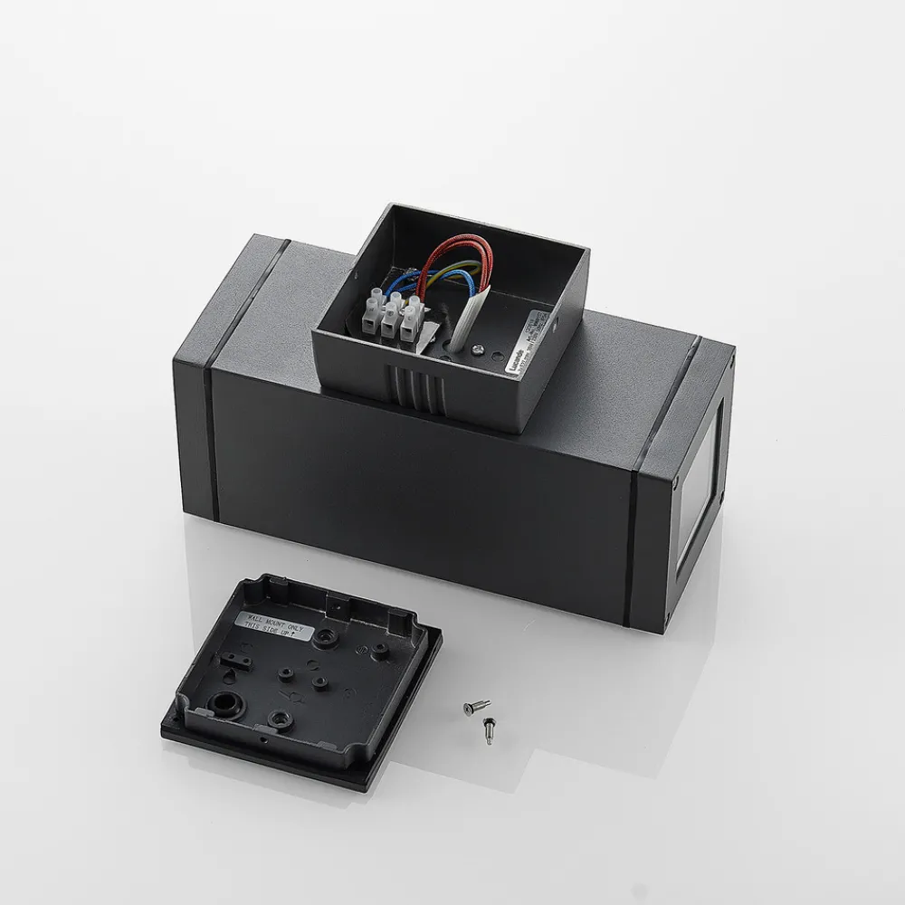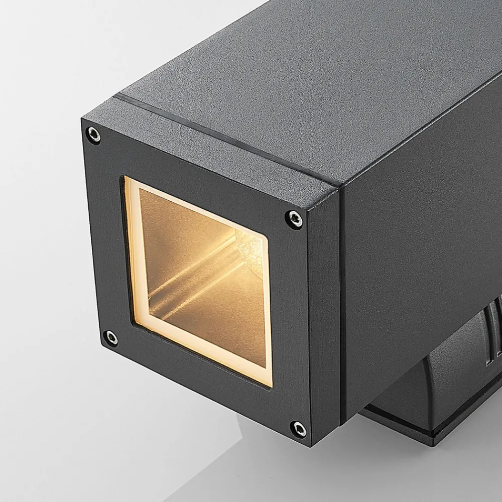 Stani passer inn i mange omgivelser, spesielt de moderne. Den utendørs vegglampen er laget av en aluminiumskropp med en mørkgrå overflate. Med E27-fatningene kan du selv velge hvilke lyspærer du vil bruke, ettersom det nå finnes mange varianter for denne standardfatningen. Lyset stråler ut både oppe og nede, slik at det dannes en behagelig kombinasjon av direkte og indirekte lys, og den smale stripen øverst og nederst styrker det moderne designet.