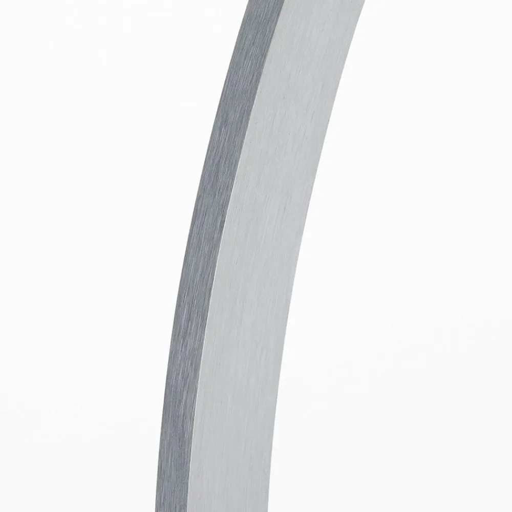 Velanoris buet bordlampe med børstet aluminiumsoverflate Velanoris passer godt inn i moderne interiør takket være sin lett buede form. Bordlampen kan brukes som leselampe og har en skjerm som kan svinges for å gi målrettet belysning på bordet. Aluminiumskroppen har en sølvoverflate med et børstet utseende, og bordlampen har et svært moderne uttrykk. På den svarte tekstilkabelen er det en bryter som kan brukes til å slå bordlampen raskt av og på.