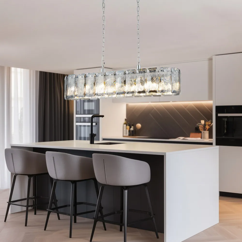 Lucea Orvin lysekrone, lineær, krom, 16-lys, lengde 96 cm, glass Sale