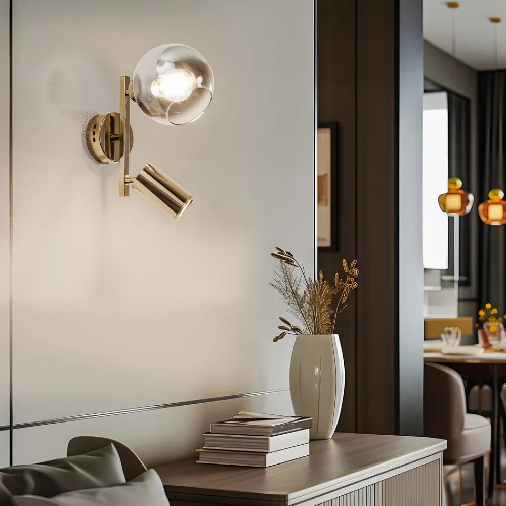 Vegglampe Zerde 1+1: Eleganse og allsidighet i gull