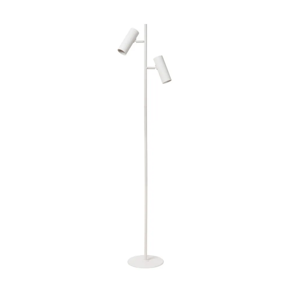 2 lyskilder Clubs i hvit Gulvlampen Clubs kjennetegnes av sin grasiøse ramme og diskrete detaljer. Armaturen er laget av aluminium og er helt hvit. Bare de to sylindriske spottene, som er bevegelige, har en rillet struktur som bryter opp uttrykket. Størrelsen på den direkte lyskjeglen kan påvirkes avhengig av valg av lyskilde. Takket være justeringsmulighetene er Clubs ideell som leselampe