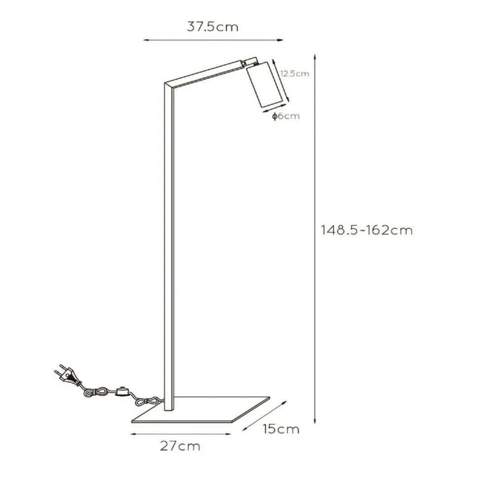 - kabellengde 200 cm; fot – lengde 27 cm, bredde 15 cm; hode – Ø 6 cm, høyde 12,5 cm