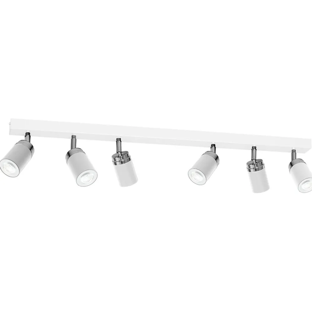 Downlight Reno, med 6 lyskilder, i hvitt og krom, kombinerer moderne design med funksjonell belysning. Denne downlighten er laget av høykvalitets metall og passer perfekt inn i ulike oppholdsrom som stuer, kjøkken, ganger og spisestuer. Kombinasjonen av hvitt og krom gir rommet en tidløs eleganse og skaper en stilig atmosfære.