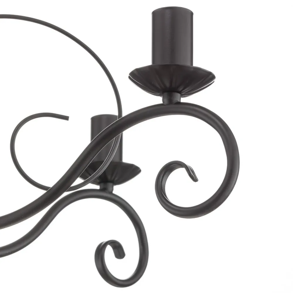 Lysekrone Mauro med 5 lyskilder kombinerer rustikk sjarm med moderne funksjonalitet og blir dermed et blikkfang i ethvert rom. Denne lysekronen er laget av høykvalitets metall i elegant svart og passer perfekt inn i landlige og rustikke interiørstiler. De fem pærene sørger for jevn belysning og skaper en innbydende atmosfære i stuen, kjøkkenet eller spisestuen.
