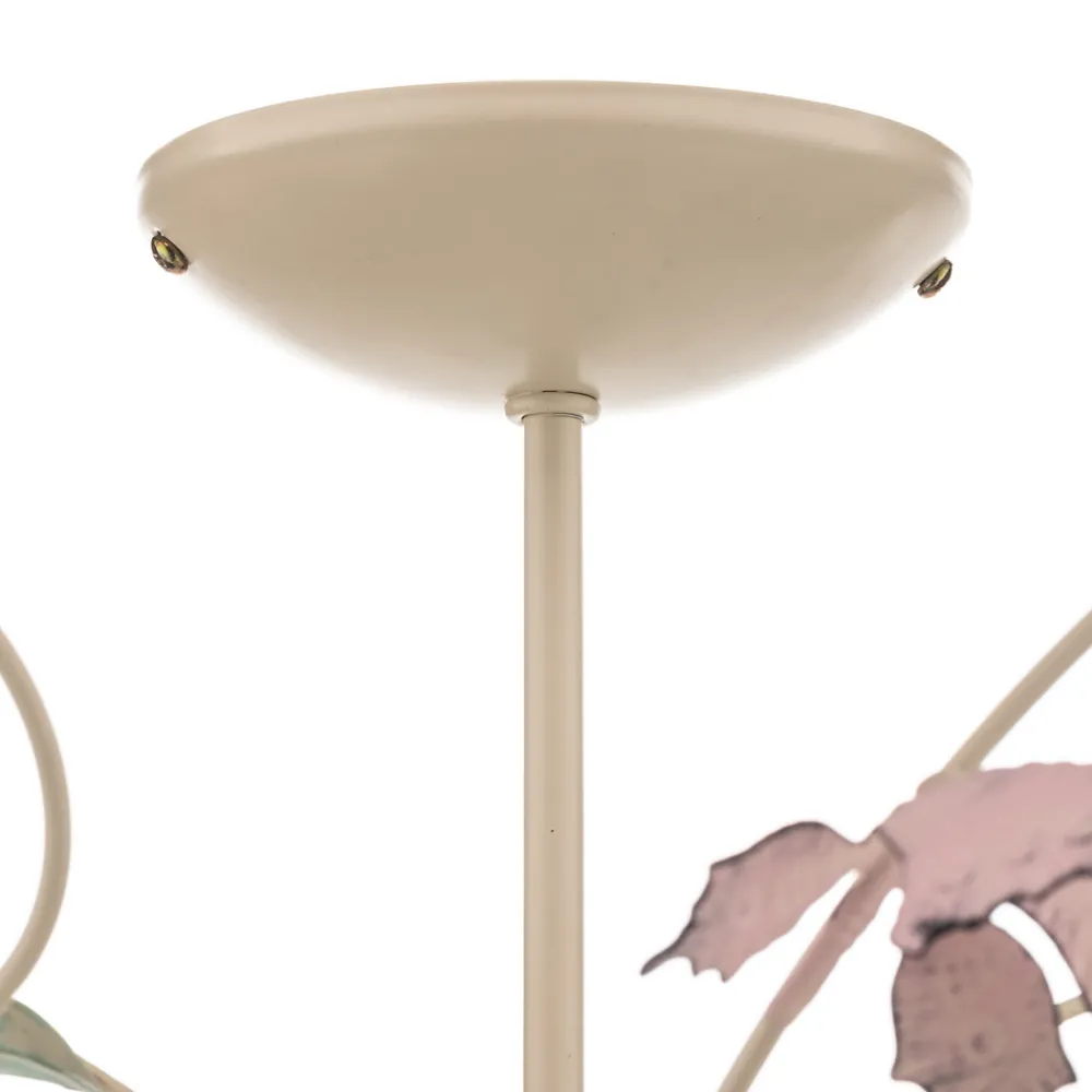 Taklampen BUTTERFLY kombinerer florentinsk sjarm med moderne funksjonalitet. Den er laget av høykvalitets stål og plast og imponerer med sin harmoniske farge i krem, grønn og rosé. Denne lampen med 5 lyskilder er et ekte høydepunkt for stuer og soverom, samt ganger og spisestuer. Muligheten for dimbarhet via en ekstern dimmer gir fleksibilitet i lysdesignet og skaper en individuell atmosfære.
