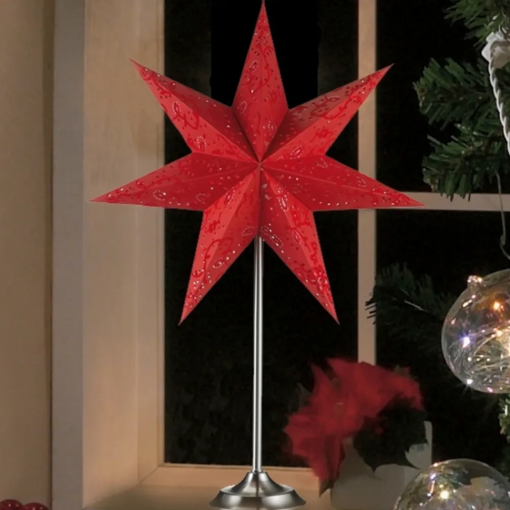 Med denne stjernen fortryller man ikke bare atmosfæren, men belyser også rommet på en flott måte. Med denne lysestaken blir juletiden til en harmonisk tid hvor man kan tilbringe tiden i en nydelig glans fra dette lyset. Den vakre strukturen og det nær sagt glitrende trykket gir lampen et helt spesielt uttrykk. Tilgjengelig i forskjellige størrelser som du kan kombinere med hverandre.