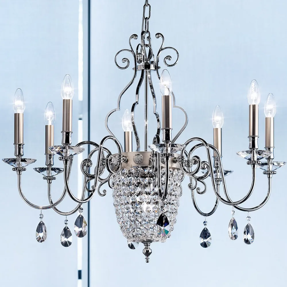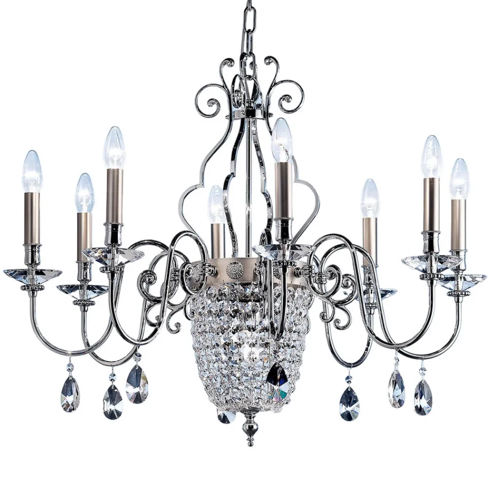 Elegantia – åttearmet lysekrone med glitrende hengninger