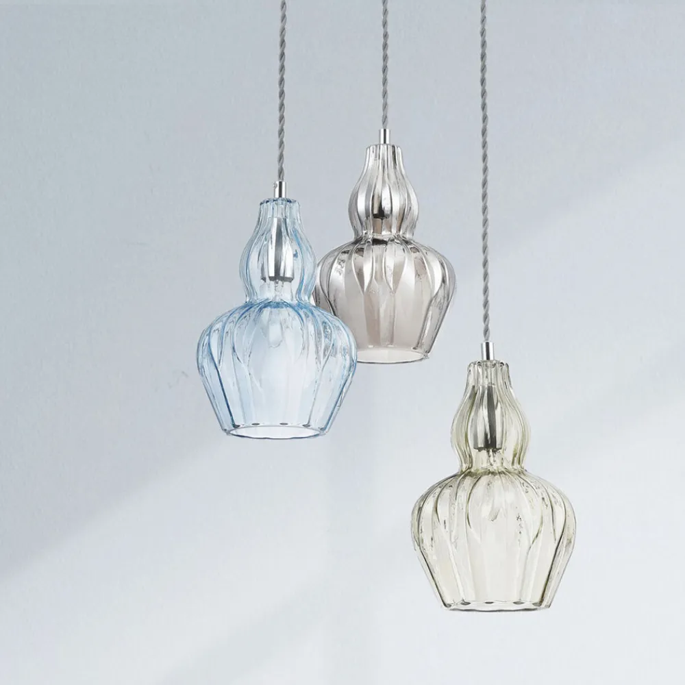 pendellampe Eustoma med farget gjennomsiktig lampeglass