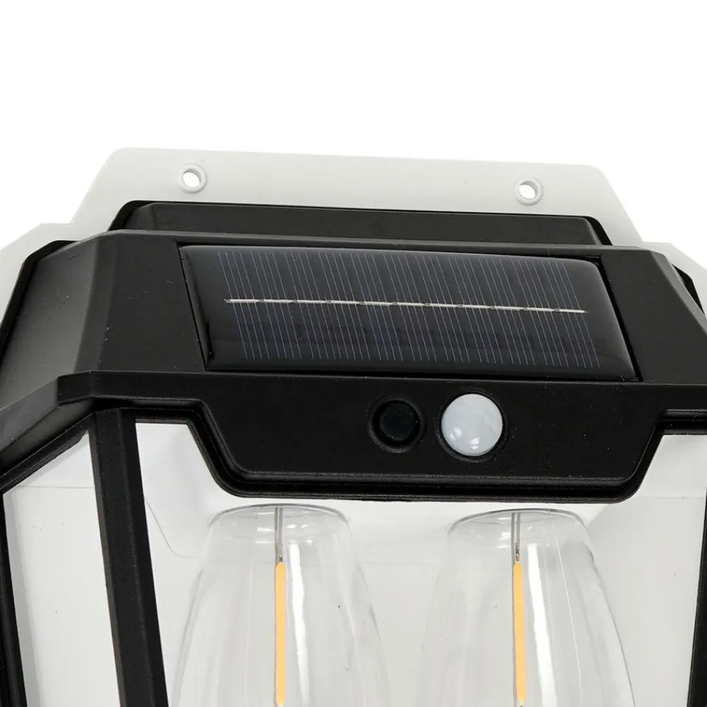 LED-utendørs vegglampe Filo Double gir belysning også uten strømtilkobling. Denne lampen er laget av høykvalitets polykarbonat og har ikke bare et tiltalende utseende i svart og gjennomsiktig, men er også robust takket være kapslingsgrad IP44, slik at den kan monteres utendørs uten problemer. De integrerte LED-lyskildene gir et energibesparende, varmhvitt lys. Lampen er utstyrt med dagslys- og bevegelsessensor. Ved mørkets frembrudd slås den på (20 lumen), og så snart bevegelse registreres, slås full lysstyrke på (300 lumen).
