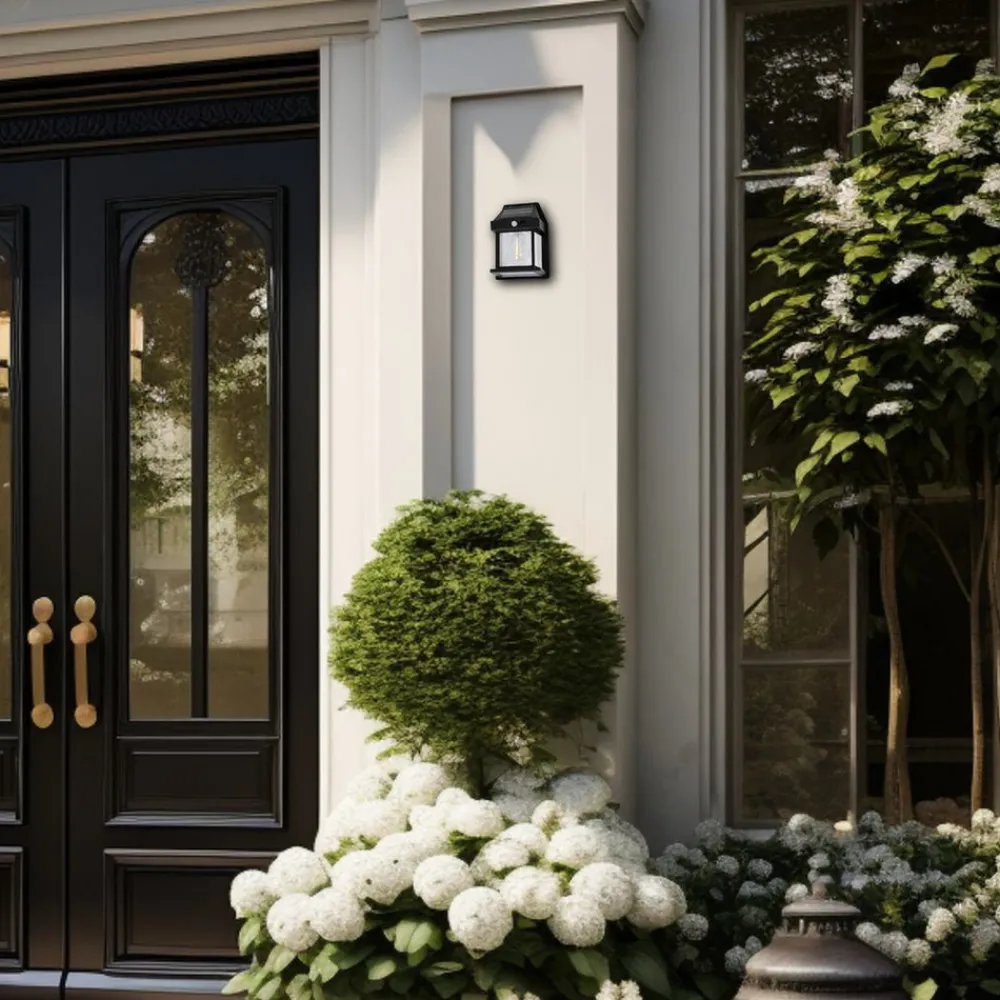 LED-utendørs vegglampe Filo gir belysning også uten strømtilkobling. Denne lampen er laget av høykvalitets polykarbonat og har ikke bare et tiltalende utseende i svart og gjennomsiktig, men er også robust takket være kapslingsgrad IP44, slik at den kan monteres utendørs uten problemer. De integrerte LED-lyskildene gir et energibesparende, varmhvitt lys. Lampen er utstyrt med dagslys- og bevegelsessensor. Ved mørkets frembrudd slås den på (5 lumen), og så snart det registreres bevegelse, slås full lysstyrke på (100 lumen).