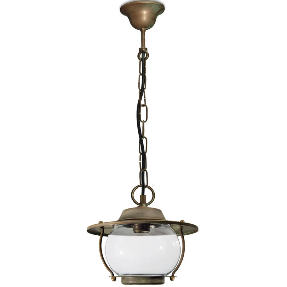 Ukonvensjonell utendørspendel Adessora i rustikk design Utependelen Adessora har et rustikt, landlig utseende. Den smakfulle lampen er hengt opp i et kjede med antikk messinglook, som også fungerer som korrosjonsbeskyttelse. Det runde glasset holdes oppe av en ramme som også har antikk messingdesign. Adessora imponerer ikke bare med sitt stilige utseende, den bidrar også til sikkerhet og orientering takket være det sterke lyset.