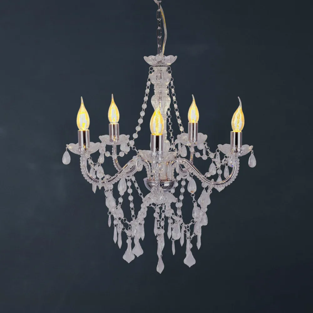 Näve Cecilia lysekrone, krom, jern/akryl, Ø 52 cm, 5 lyskilder. New