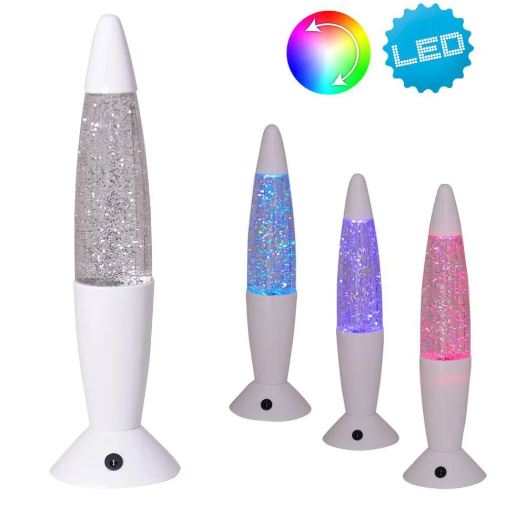 Denne LED-lavalampen sørger for et fasinerende skuespill Små metallplater beveger seg og sørger dermed for en glitrende effekt, mens LED-lys i ulike farger sørger for flerfarget lys. Lavalampen Glitter er derfor et flott dekorasjonsobjekt i stuen og bidrar til en avslappende atmosfære. inklusive batterier (3 x AA).