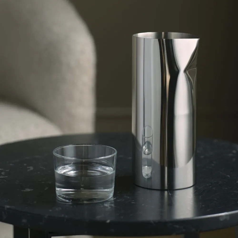 Karaffelen Pleat utvider den voksende kolleksjonen av bordartikler som kombinerer hverdagsfunksjonalitet med et skulpturelt preg fra produsenten New Works. I likhet med seriene Ripple og Aura reflekterer den polerte silhuetten i stål omgivelsene, samtidig som den beholder sin unike tilstedeværelse. Med et enkelt trekk på den sylindriske utsiden dannes en perfekt tut. Denne prosessen understreker både styrken og enkelheten til Pleat og gjør den samtidig til et svært funksjonelt produkt.