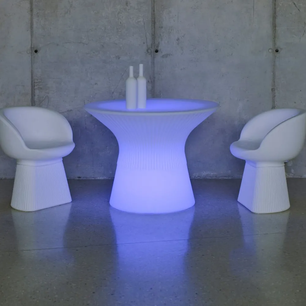 Det lysende Capri-bordet for innendørs og utendørs fullfører en avslappende salong innendørs eller utendørs, i private eller kommersielle miljøer. Det vakkert formede bordet med rillet fot er laget av plastpolyetylen. Dette materialet, som brukes av produsenten Newgarden til nesten alle produkter og er preget av UV-motstand og motstand mot ekstreme temperaturer, gjør bordet til et robust møbel for innendørs og utendørs bruk. En dekkplate for metakrylat er inkludert for å beskytte overflaten. Utstyrt med en solmodul og et batteri inne i bordet, kan de innebygde fargede og hvite lysdiodene lyse gratis. På dager der det ikke er nok sollys til å lade batteriet, kan det også lades i stikkontakt med den medfølgende ladekabelen, slik at maksimal forbrenningstid kan sikres om kvelden. Lysinnstillingene på bordet kan enkelt gjøres ved hjelp av fjernkontroll som er inkludert i leveransen.