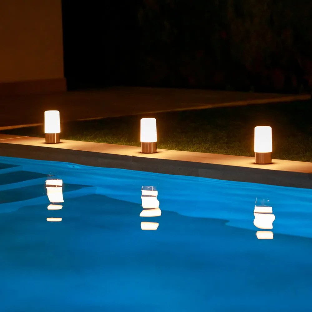 Newgarden Maia LED-bordlampe: IP54-beskyttelse for uteområder Maia LED-bordlampe er et mesterverk av moderne belysning designet for både balkonger og uteplasser. Med kapslingsgrad IP54 er den ideell for utendørs bruk, da den er beskyttet mot vannsprut og støv. Den integrerte LED-lyskilden gir ikke bare energibesparende belysning, men også en CCT-funksjon for justerbare hvittoner samt en RGB-funksjon som gjør at rommet kan belyses med en rekke ulike farger.
