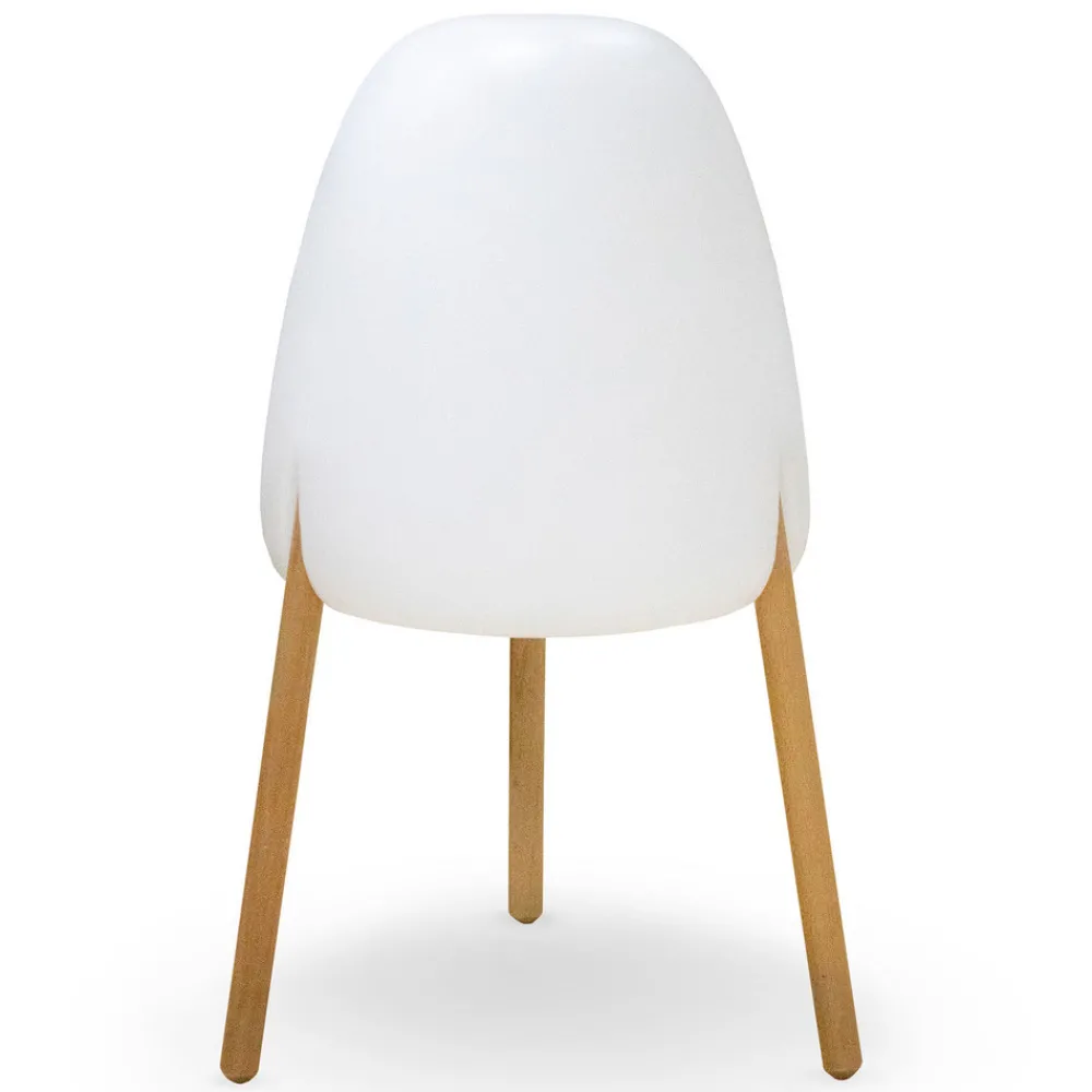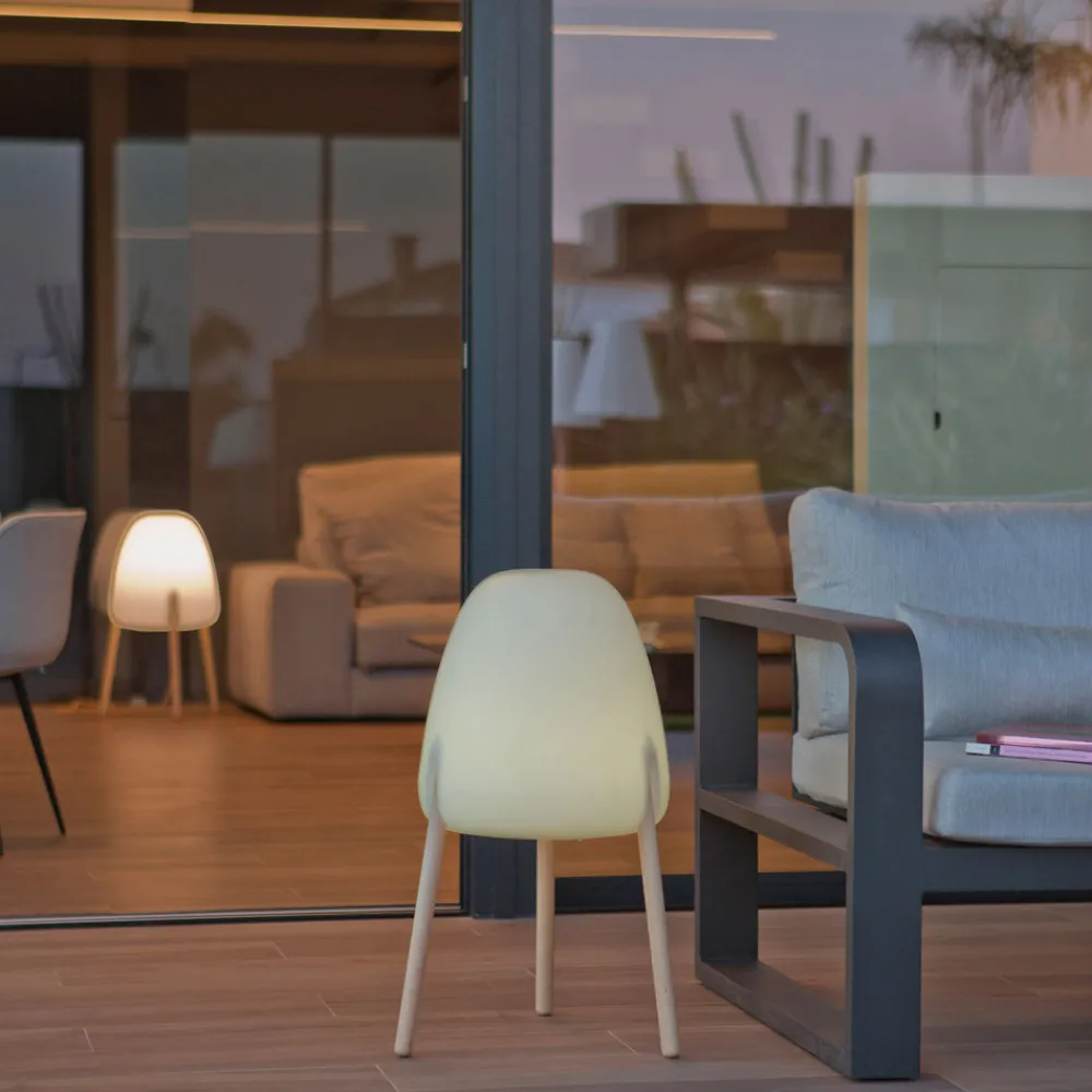 Ikke bare på grunn av designet og kombinasjonen av en hvit skjerm laget av polyetylen og en trebent stang laget av lett tre, men også på grunn av den fleksibelt justerbare belysningen, er Rocket gulvlampe et høydepunkt på hver terrasse. Den kan plasseres hvor som helst i uteområdet uten en irriterende kabel, fordi det er et solcellepanel øverst på skjerm som lader det integrerte batteriet om dagen ved hjelp av solenergi. Hvis solen ikke skinner nok, er det også mulig å lade lampen via en kabel i stikkontakt . skjerm er UV-bestandig og værbestandig, trerammen har også blitt behandlet for utendørs bruk, og hele lampen er beskyttet mot vær og vind med kapslingsgrad IP65.