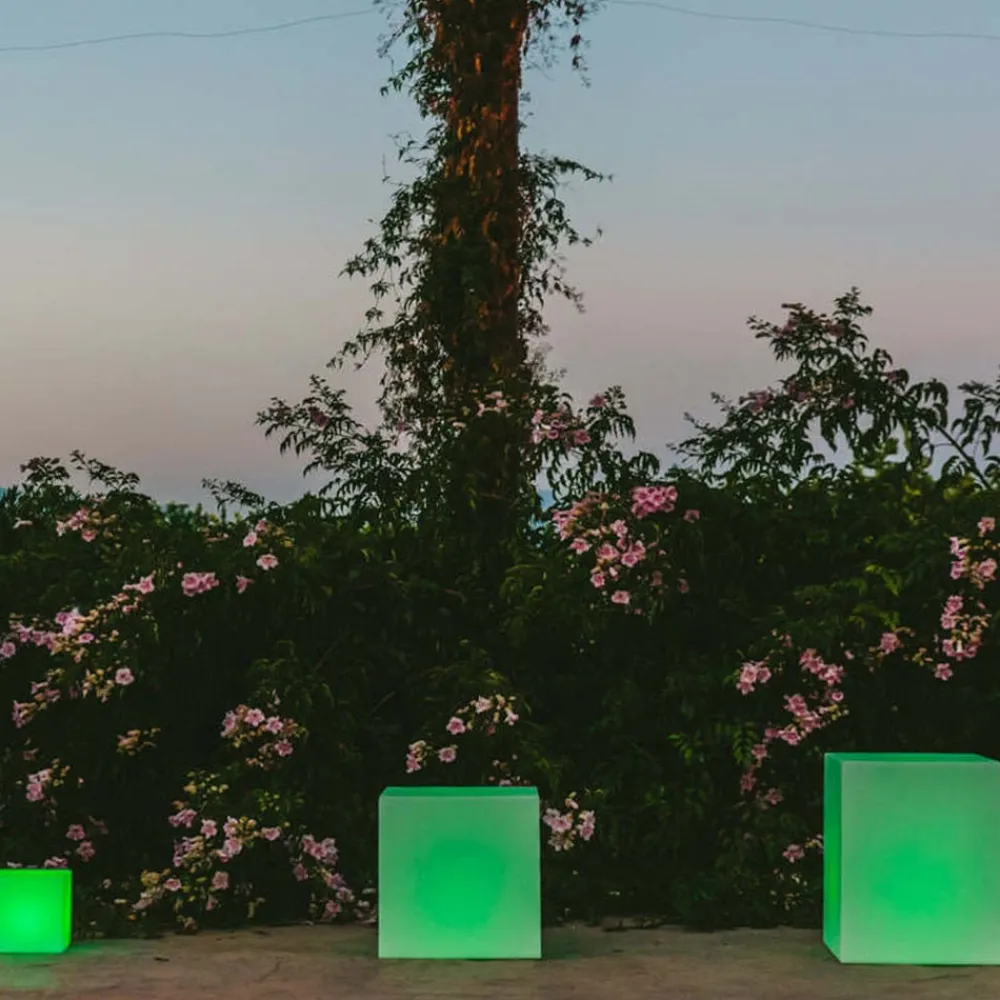 Den lysende kuben Cuby er et produkt fra den spanske belysningsprodusenten Newgarden. Newgardens produktportefølje spenner fra et bredt utvalg av lys for innendørs og utendørs bruk til lysende plantepotter og selvlysende møbler. Nesten alle produsentens produkter er laget av polyetylen, en plast som ikke bare er 100% resirkulerbar, men også veldig robust.
