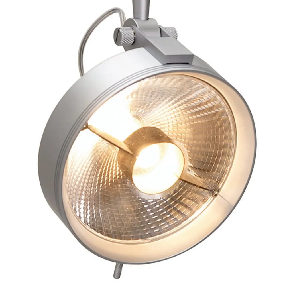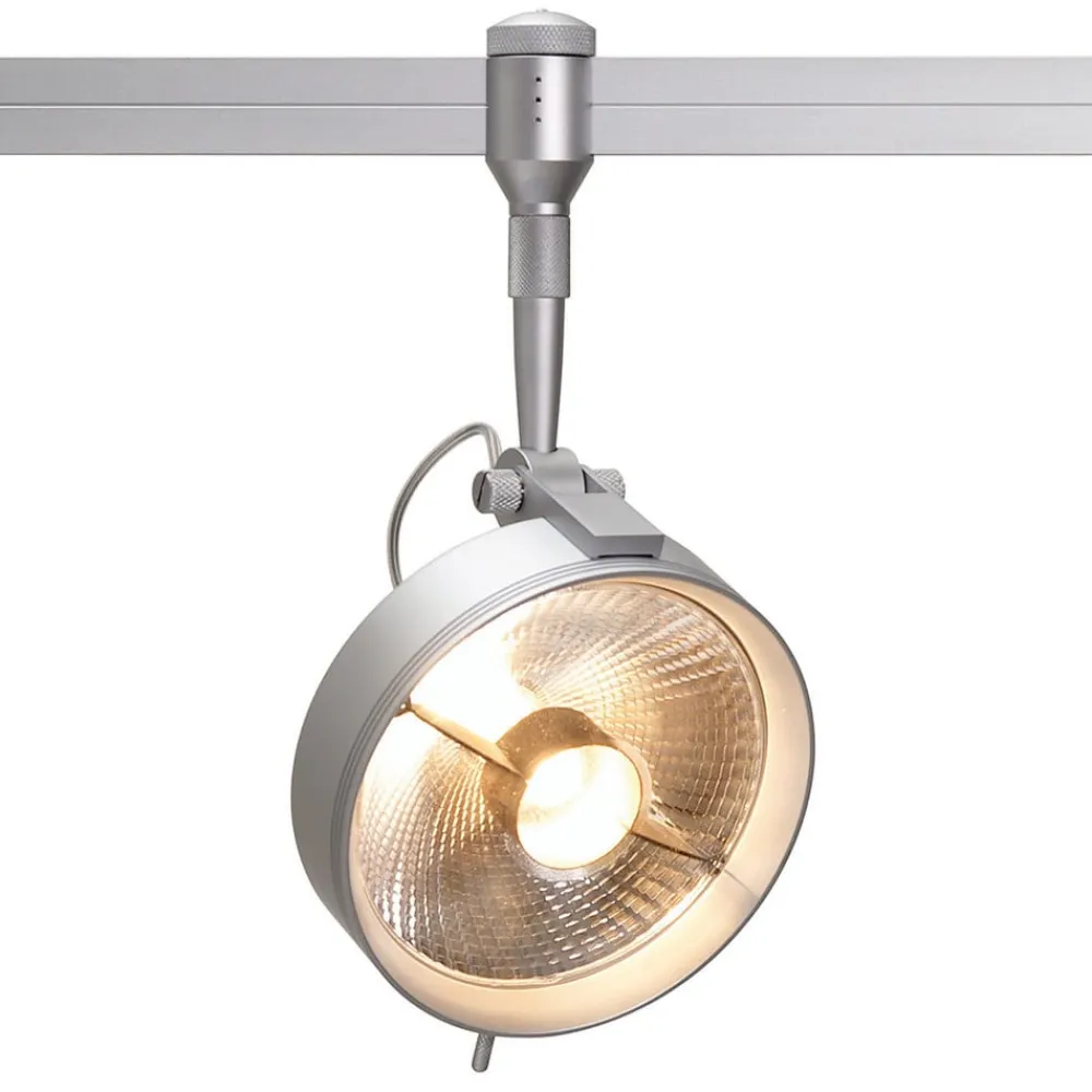 Ice single spotlight for Check-In 1-fase skinne Ice spotlight i matt sølvfinish, som kan både dreies og svinges, kan brukes overalt der det er behov for individuelt rettet belysning. Det plassbesparende Check-In-skinnesystemet med én pære er egnet for hjemmet, men også for kontorer og butikker. Fordelene er mange: Det omfatter lampekropper for et bredt spekter av lampeteknologier samt en rekke systemkomponenter – Med aluminiumsskinne (størrelse: 22 x 8 mm) i høyfast utførelse – Passende lyskildestørrelse: QPAR 111, GZ10 eller GU10