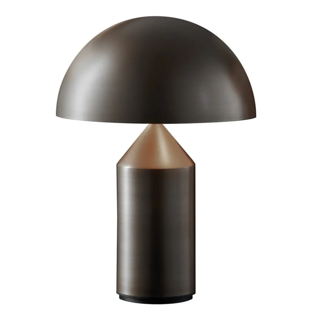 Klassikeren blant designerbordlamper: Atollo Bordlampen Atollo fra Oluce har et glamorøst og storslått utseende. Den har en sylindrisk lampesokkel som smalner av i toppen og er utstyrt med en halvskallskjerm som danner en farge med sokkelen. Den halvkuleformede lampeskjermen retter lyset ned på bordflaten og skaper en indirekte og svært behagelig fremheving av omgivelsene.