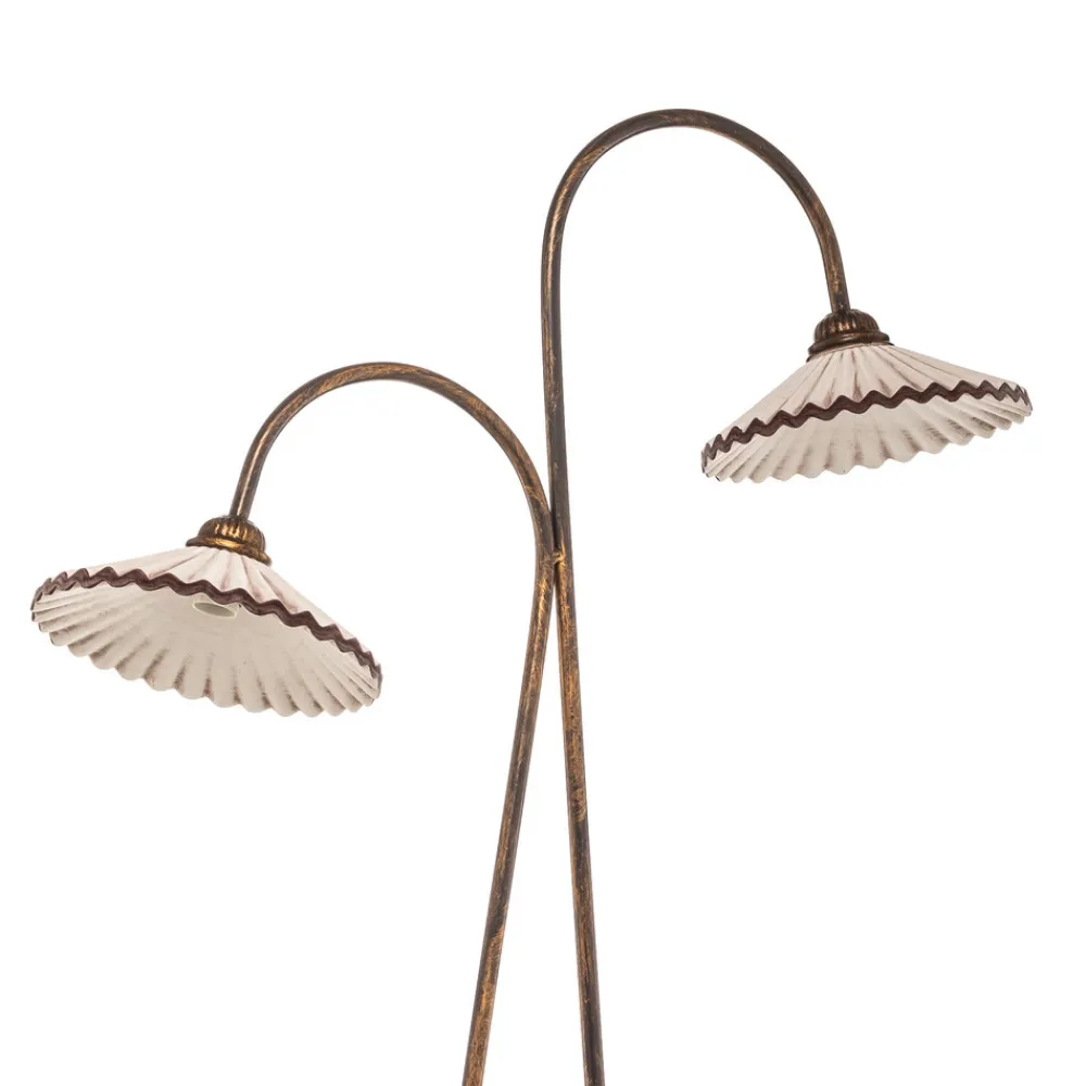 Gulvlampen Rosina med to keramiske lampeskjermer kombinerer rustikk sjarm med tidløs eleganse. Lampen er laget av høykvalitetsmaterialer som keramikk og jern, og passer harmonisk inn i stuen og spisestuen. Kombinasjonen av lysrosa og antikkbronse gir ethvert rom en varm og innbydende atmosfære. De nøye utformede keramiske lampeskjermene sørger for jevn lysfordeling og setter stilfulle aksenter.