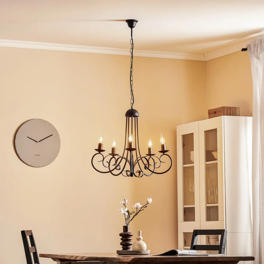 Lysekrone Pompei imponerer med sitt rustikke design, som er laget av høykvalitets jern. Den svarte fargen gir lysekronen en tidløs eleganse som passer perfekt inn i forskjellige interiørstiler. Denne lysekronen er spesielt egnet for stuer, kjøkken og spisestuer, og skaper en varm og innbydende atmosfære.