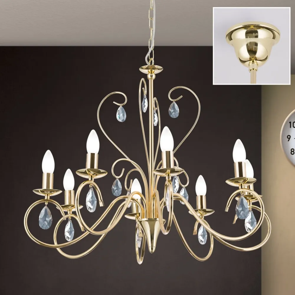 ORION Grasiøs FIORETTO lysekrone i gull med åtte lys| Lysekroner