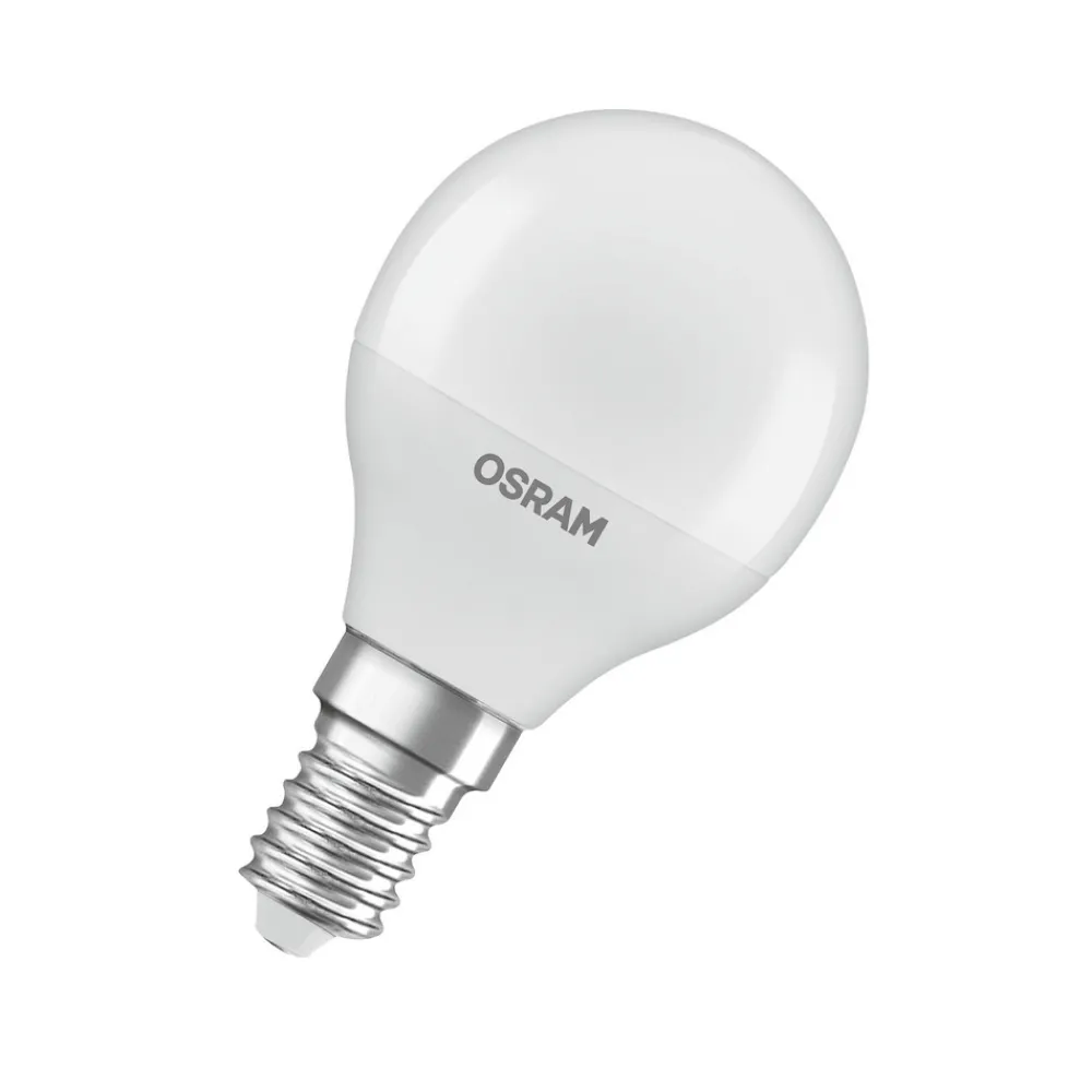 Laget av resirkulert plast: OSRAM Classic Star LED-lyskilde, E14, 3,3 W, 2700 K LED-lyskilden Classic Star med dråpeformet E14-sokkel gir varmhvitt lys og imponerer også med sin klassiske størrelse og matte overflate. Ettersom det ikke er noen UV- eller nær-infrarøde komponenter i lysstrålen, er denne lyskilden ideell for belysning av varmefølsomme objekter som mat eller planter. Classic Star er laget av minst 40 % resirkulert plast, gir 100 % lys umiddelbart uten oppvarmingstid og er en universelt anvendelig LED-lyskilde.