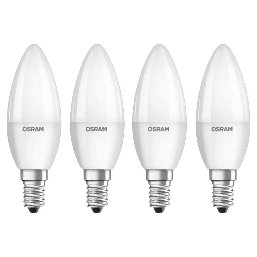 Denne LED-lyslampen fra OSRAM leveres i en sammenleggbar boks med 4 stk. Lysstyrken kan sammenlignes med en 40 W glødelampe, men krever bare en brøkdel av energien.