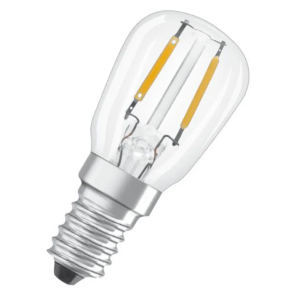 OSRAM E14 1.6W LED-lampe T26 glødetråd med klart glass til kjøleskap eller små lampeskjermer, lysfarge 2.400 K ekstra varm hvit
