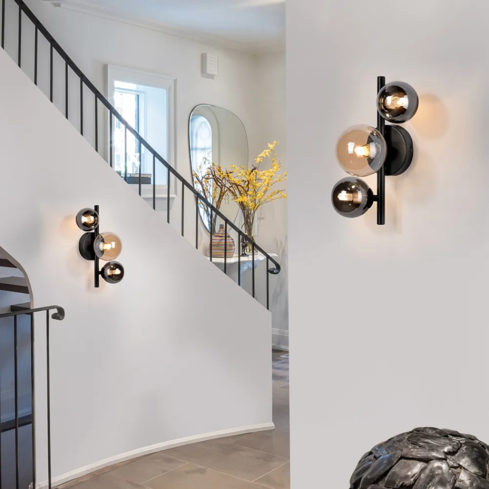 Utskiftbare LED-pærer medfølger: Popsicle-vegglampe med lampeskjermer i glass Den vakkert designede, svarte Popsicle-…